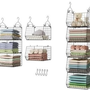 Product Description Maximize closet space with X-cosrack Foldable Closet Hanging Organizer, which will add more shelving in your closet for folded clothes, pants, purses, shoes, hats or other accessories. Featuring 2 sturdy metal hooks, this closet hanging baskets is easy to hang on the closet bar. Two colors to choose:…