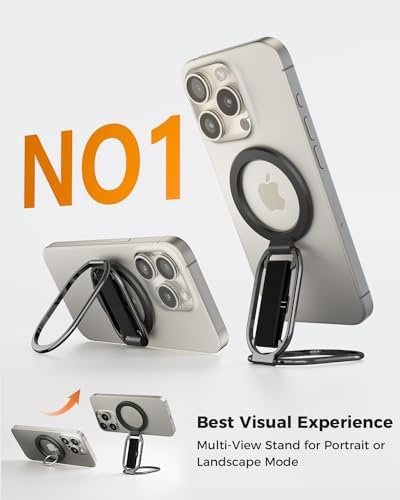 [๐— ๐˜‚๐—น๐˜๐—ถ-๐—ฉ๐—ถ๐—ฒ๐˜„ ๐—ฆ๐˜๐—ฎ๐—ป๐—ฑ] The iphone magsafe kickstand features a multi-angle adjustable kickstand that rotates 360ยฐ, with dual joints flipping 280ยฐ and 360ยฐ, tested to withstand 35,000 folds without getting loose. It provides hands-free viewing in both portrait and landscape modes. Use it as a magnetic phone stand to prop up your phone for watching videos, movies, YouTube, TikTok, taking selfies, or FaceTiming someone.