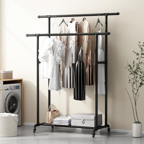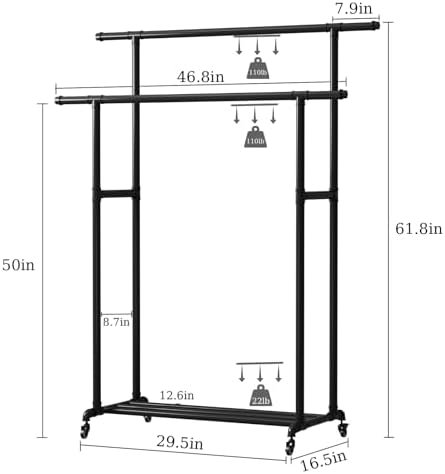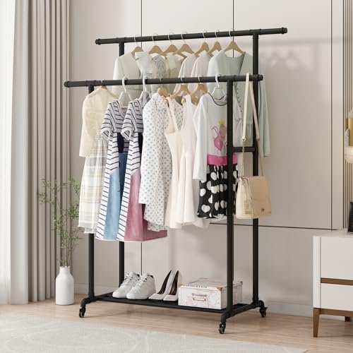 With its double-rod design, the clothing garment rack offers ample hanging space for all your clothing needs.