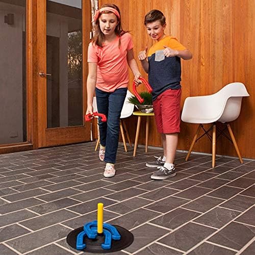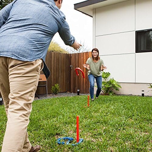 Bright, vibrant colors: This horseshoe set comes with bright red and blue horseshoes along with vibrant yellow pegs, improving visibility for outdoor play and making it easier for players to see their target when throwing the horseshoes