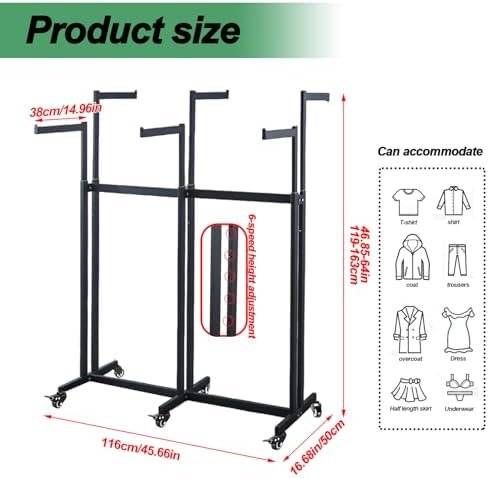 STRONG AND STABLE: Our black clothing rack is made of high quality metal with welded steel frame and crossbar , which has some stability. You can put it in the clothing store, shopping center or workshop to hang clothes