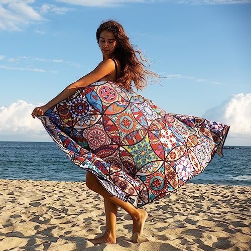 💦FAST DRYING & SUPER ABSORBENT – Microfiber is smoother and thinner than cotton, soaking up water to leave you dry. Our microfiber beach towels dry 3x faster than cotton, letting you pack up quickly without the damp smell of wet clothing.