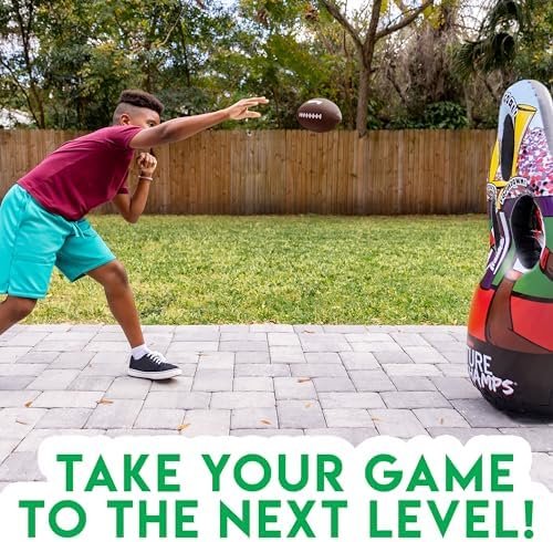 FOOTBALL ON THE GO: The inflatable 3-hole football target stores and travels easily, making it perfect to take on the go!
