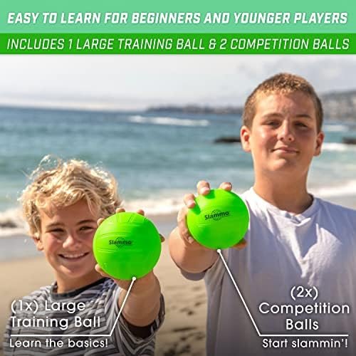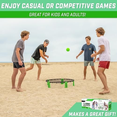 WHAT IS SLAMMO: Slammo is an action-packed 2-on-2 volleyball style game where teams have 3 hits to return or spike the ball to the circular net; Fun for the whole family at the beach, BBQs, camping, and in the backyard