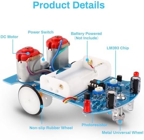 ✔【Wide – Application】: Smart DIY robot car is the most widely used in school for helping students to learn about the soldering project knowledge of mechanical structure, electronic basis skills, the principle of sensor, automatic control, soldering skill and so on.