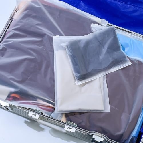 Wide Applications: The frosted zipper bags for clothes are ideal for travelling and family storage. Our frosted clothes ziplock bags are suitable for storage of travel items, such as underwear, towels, shoes, clothes, cosmetics, toiletries, etc.